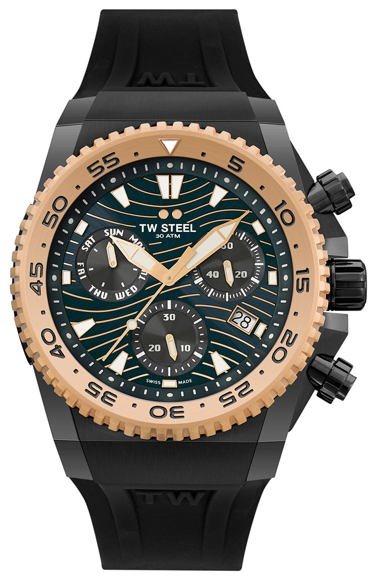 The TW Steel Ace Diver Limited Edition ACE413 is a special watch and only 1000 pieces ever produced. The TW Steel ACE403 is a stylish men's watch with a 44 mm wide stainless steel case in black and a black rubber strap. The watch features a chronograph and a date display. The black dial of the TW Steel ACE413 watch is protected by a sapphire crystal. The watch is water resistant to 300m / 30atm, making it highly water resistant. It is suitable for deep diving and professional diving. The TW Steel Ace range of watches is guaranteed for 5 years (not glass) and is supplied in the original manufacturer's case.
